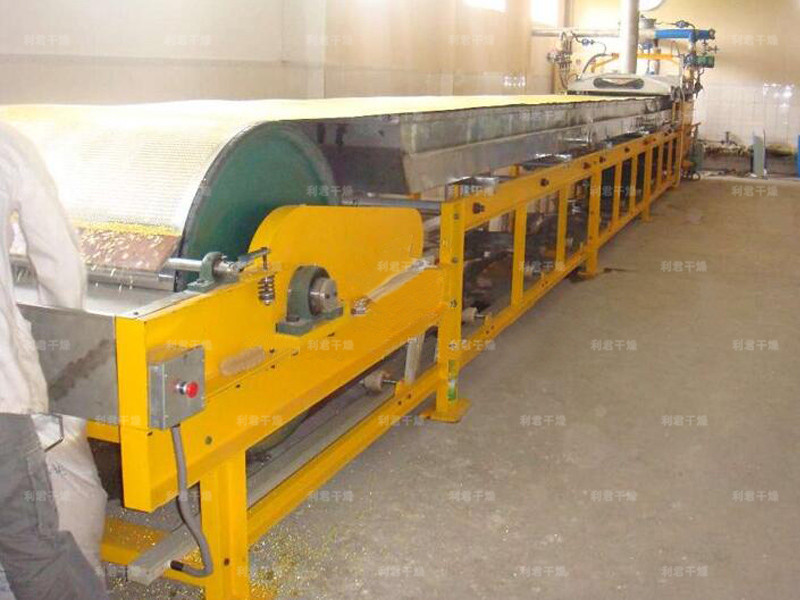 該機由液體變固體粒狀,主要是通過造粒模頭造粒,采用回轉式鋼帶連續進行,通過噴淋水冷卻定型。