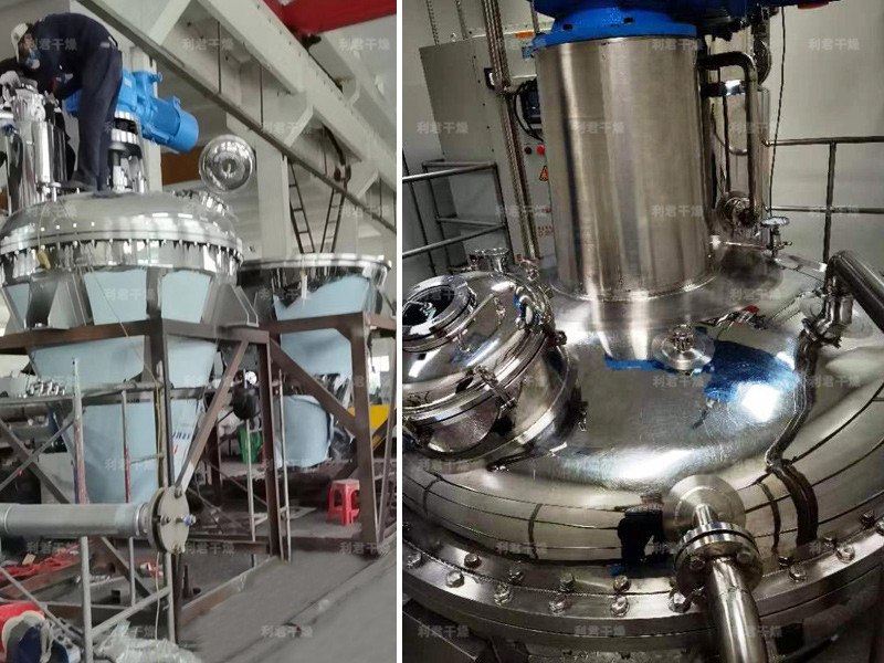 ●真空狀態下操作,在低溫下也有較高的蒸發速率,特別適合熱敏性物料及易氧化物料的干燥,也能適合含有溶劑的物料,并能回收溶劑。